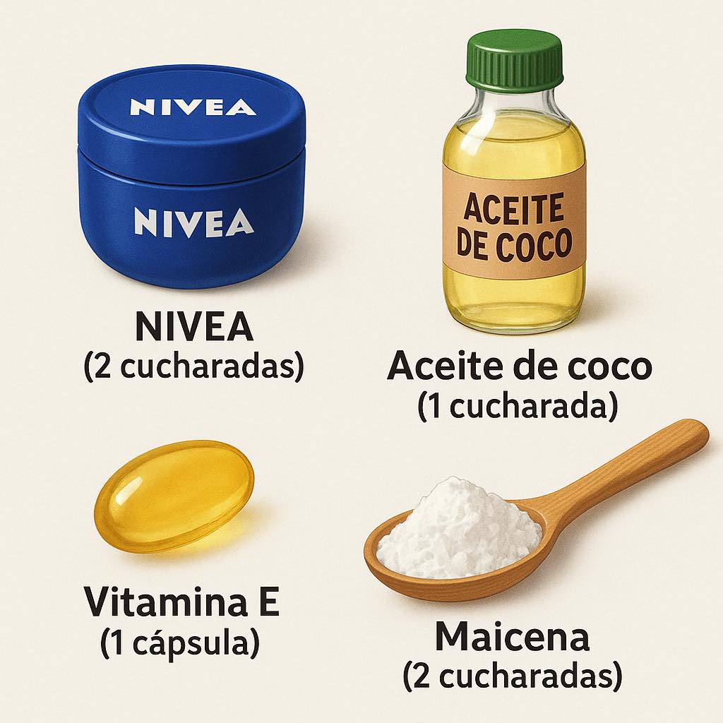 - 2 cucharadas de crema Nivea clásica (frasco azul): Esta crema es conocida por su capacidad de brindar una hidratación intensa, lo cual es fundamental para mantener la piel fresca y rejuvenecida.